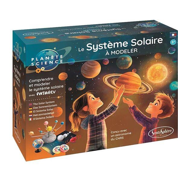 Ce coffret permet de découvrir notre Système Solaire avec 5 expériences fascinantes. Grâce un pot de Patarev, il sera possible de faire une mise à l'échelle des planètes, tout en découvrant leurs particularités, avant de construire un mini Système Solaire et d'observer le principe des éclipses. La notice montre également comment fabriquer une toupie qui, une fois lancée, aidera à comprendre et illustrer les mouvements de la Terre, à l'origine des jours et des saisons.
